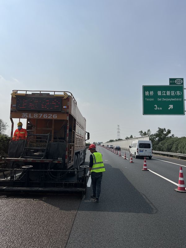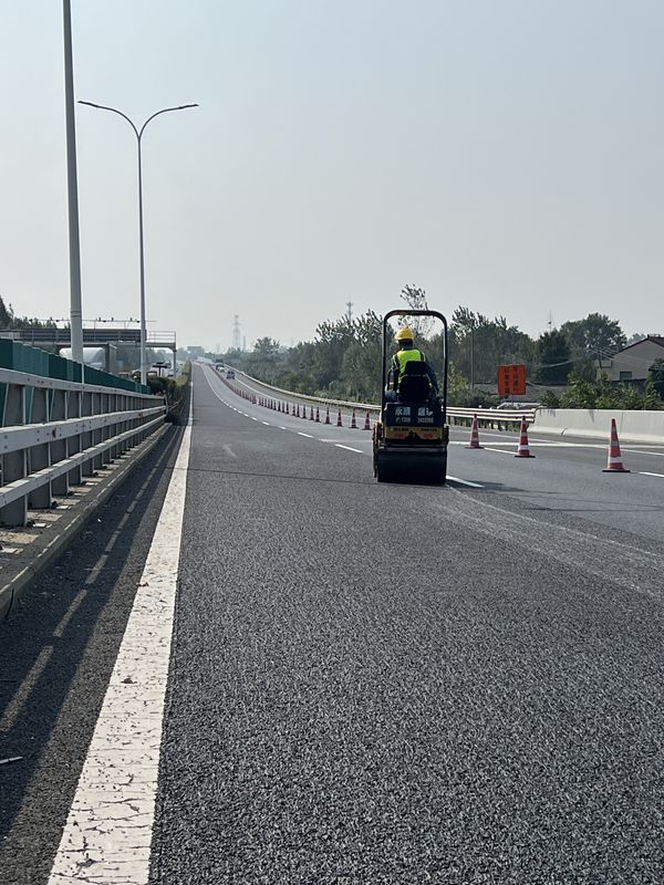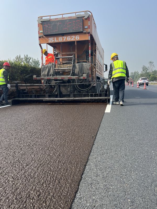 SBS高黏乳化瀝青冷拌冷鋪,單粘徑超薄低噪抗滑磨耗層施工現場。